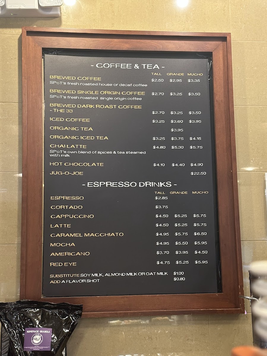 Don’t forget to treat yourself to delectable desserts like their Brownie or Smores Bar, each under $5. Patrons rave about the tasty coffee and welcoming atmosphere, making Spot Coffee the perfect place to unwind or work on the go.